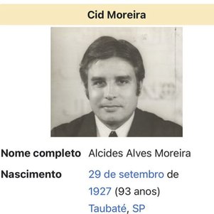 Cid moreira (1927) � um jornalista, locutor e apresentador brasileiro.